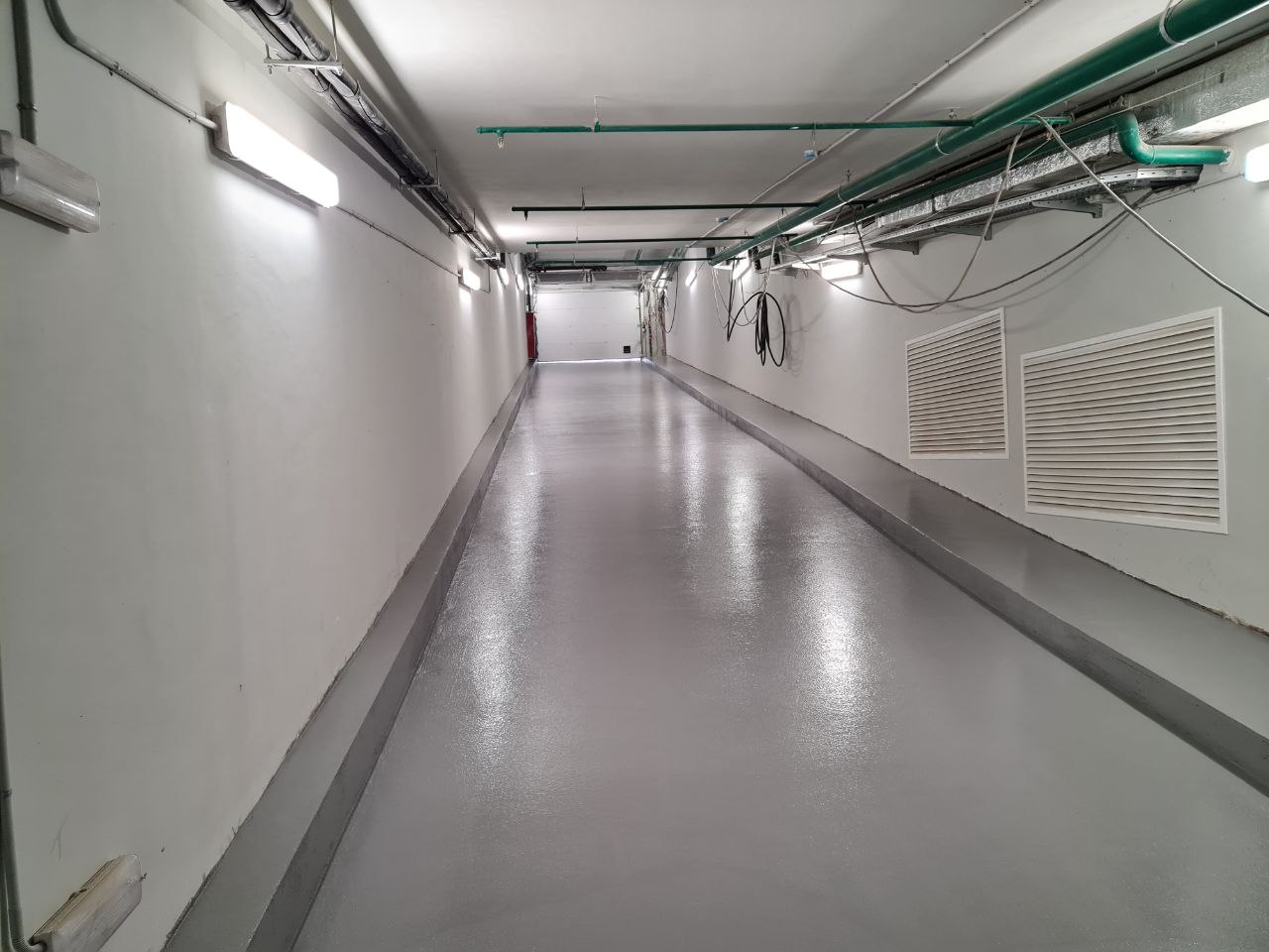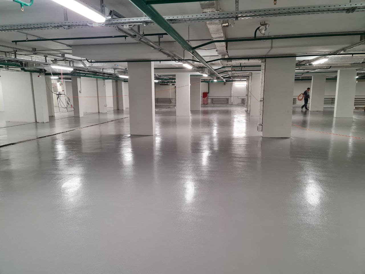 Было предложено полиуретан-цементное решение которое удовлетворяло всем требованиям и позволяло увеличить гарантийный срок с 2 до 3 лет. Но для устройства данных полов необходима квалификация мастеров и специальное оборудование.